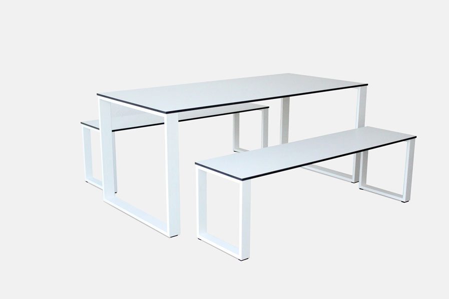 Tischplatte: HPL t=13, Fläche weiß (WS) oder eisengrau (EG), Kanten schwarz